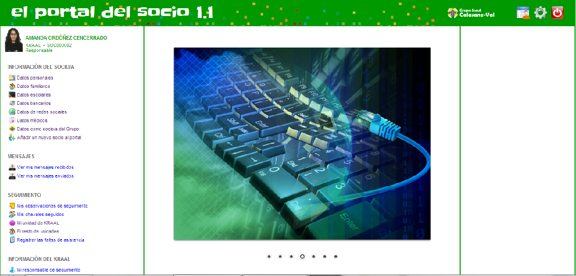 Una vez hayáis entrado os saldrá el siguiente menú (las opciones que os salgan a vosotros serán distintas, ya que yo he entrado con mi perfil de Responsable, no de Socio):