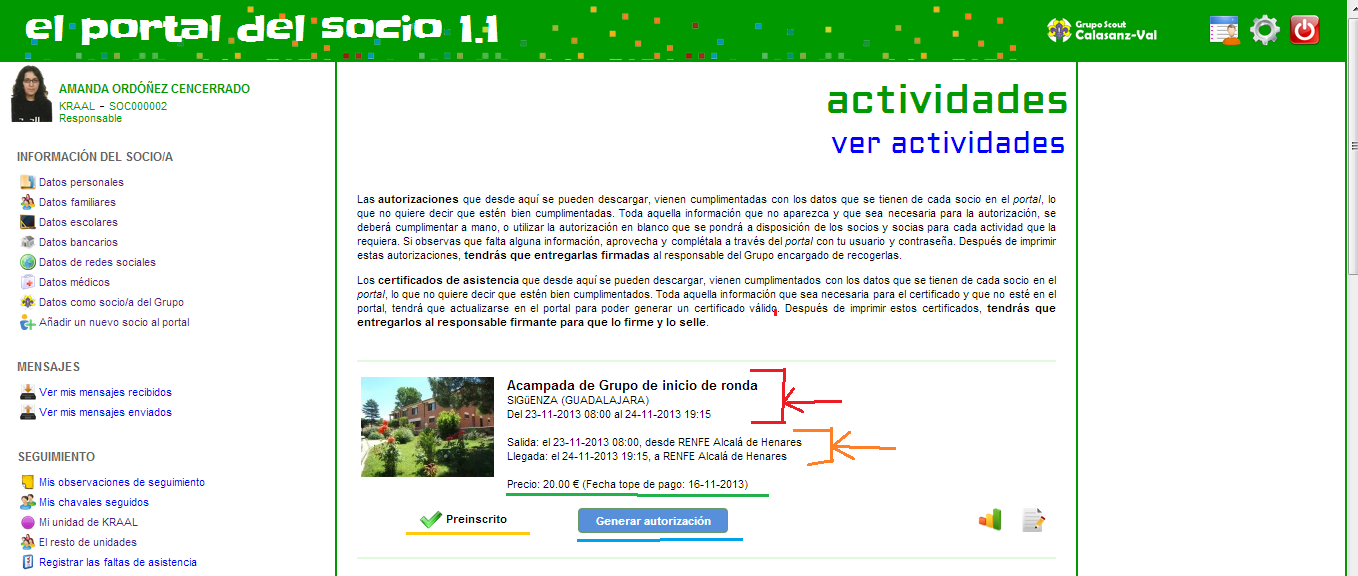 Como ya sabréis, dentro de dos fines de semana (23 y 24) nos vamos a Sigüenza, a realizar la primera acampada de Grupo.Normalmente os subimos aquí la autorización de la acampada, junto con la información necesaria, pero este año, con la entrada en funcionamiento del Portal del Socio, toda la información está allí localizada, para que os descarguéis la autorización ya rellena y sólo tengáis que firmar.